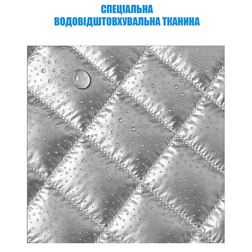 З обох боків штора зроблена з вітронепродувного і водовідштовхувального матеріалу однакового кольору. Усередині, по всій площі, зашитий утеплювач синтепон, штора від холоду зроблена за типом зимової куртки. Синтепон пристрочен до матеріалу, щоб згодом не зрушувався. З однієї зі сторін, зверху і з боків, встановлена липка стрічка, вона багаторазова, використовується у взутті, сумках і одязі. Також у комплекті йде зворотна частина липучки зі скотчем. Нічого підрізати та ушивати не потрібно, комплект повністю готовий до встановлення та використання. Термоізоляційну штору можна знімати та одягати нескінченну кількість разів.