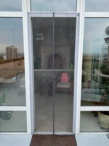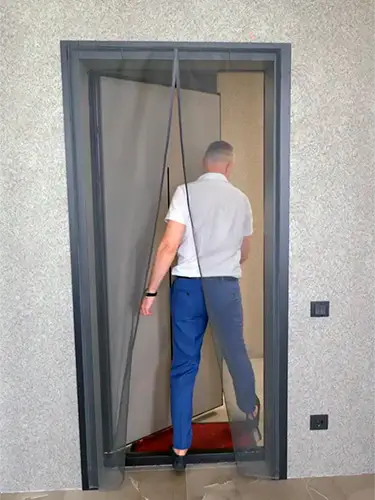 Абсолютно проста в эксплуатации, не требует ухода. Хорошо работает даже при сильном ветре. Когда вы проходите сквозь сетку, благодаря магнитам штора автоматически закрывается прямо за вами, это удобно и для домашних животных. Магнитные ленты автоматически стягивают «створки» – поэтому вам не нужно каждый раз задергивать их вручную, при этом сетка препятствует проникновению насекомых, не нарушая естественную циркуляцию воздуха.